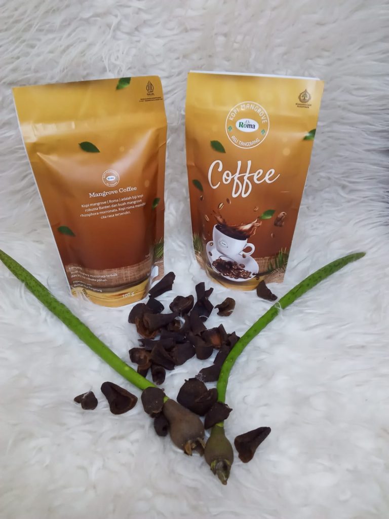 Kopi Mangrove (Roma); adalah biji kopi robusta Banten dan buah mangrove, memiliki rasa kopi cita rasa tersendiri. Dapatkan citarasa otentik dan kaya dengan menyeduh Kopi Mangrove.
